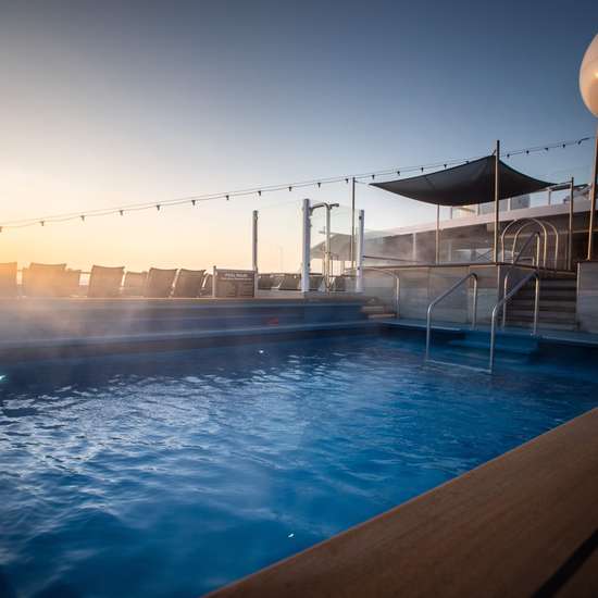 If you’re looking for a unique way to relish in the remarkable views from this cruise ship’s top deck, the outdoor hot tubs aboard MS Otto Sverdrup are a fantastic option – and when it comes to soaking your muscles after a day of shore excursions.