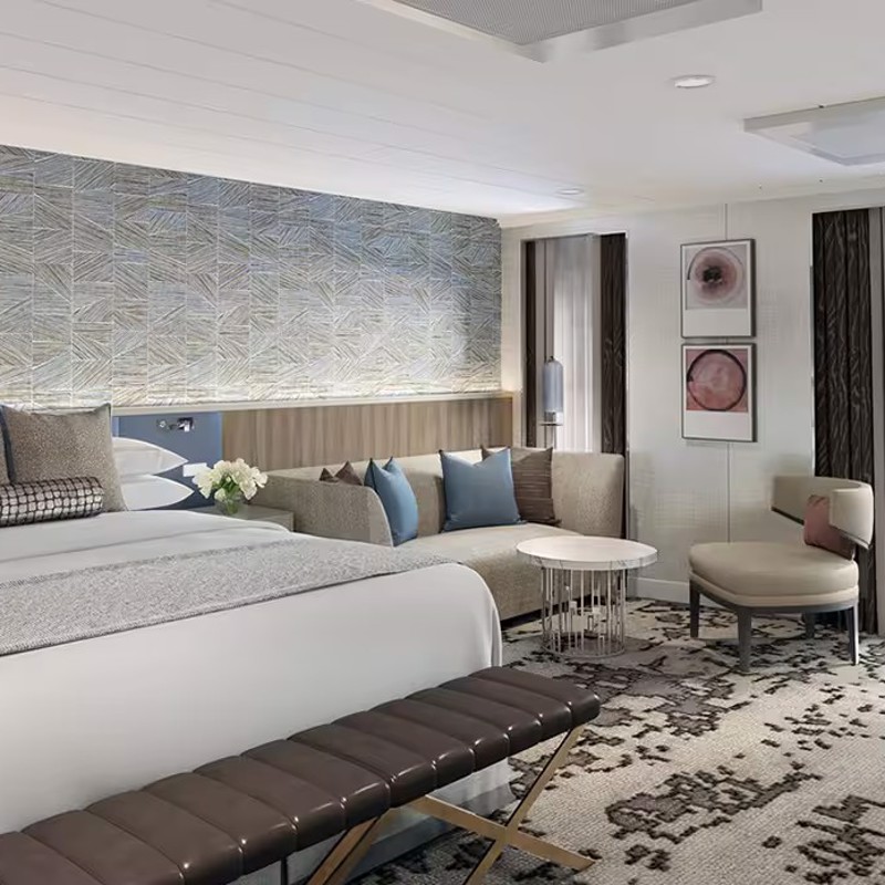 - Bedroom with King-size Prestige Tranquility Bed, an Oceania Cruises exclusive, with 1,000-thread-count linens