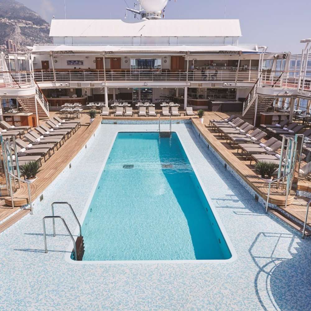 Spend sunny sea days relaxing poolside onboard Silversea Muse with a good book and a refreshing cocktail as you top up your tan poolside and then, when you need a cool down, take a dip in the pool or the whirlpool for an invigorating soak.